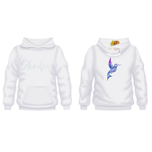 Skoden in Rhinestone Sweater with Haida Hummingbird on the back